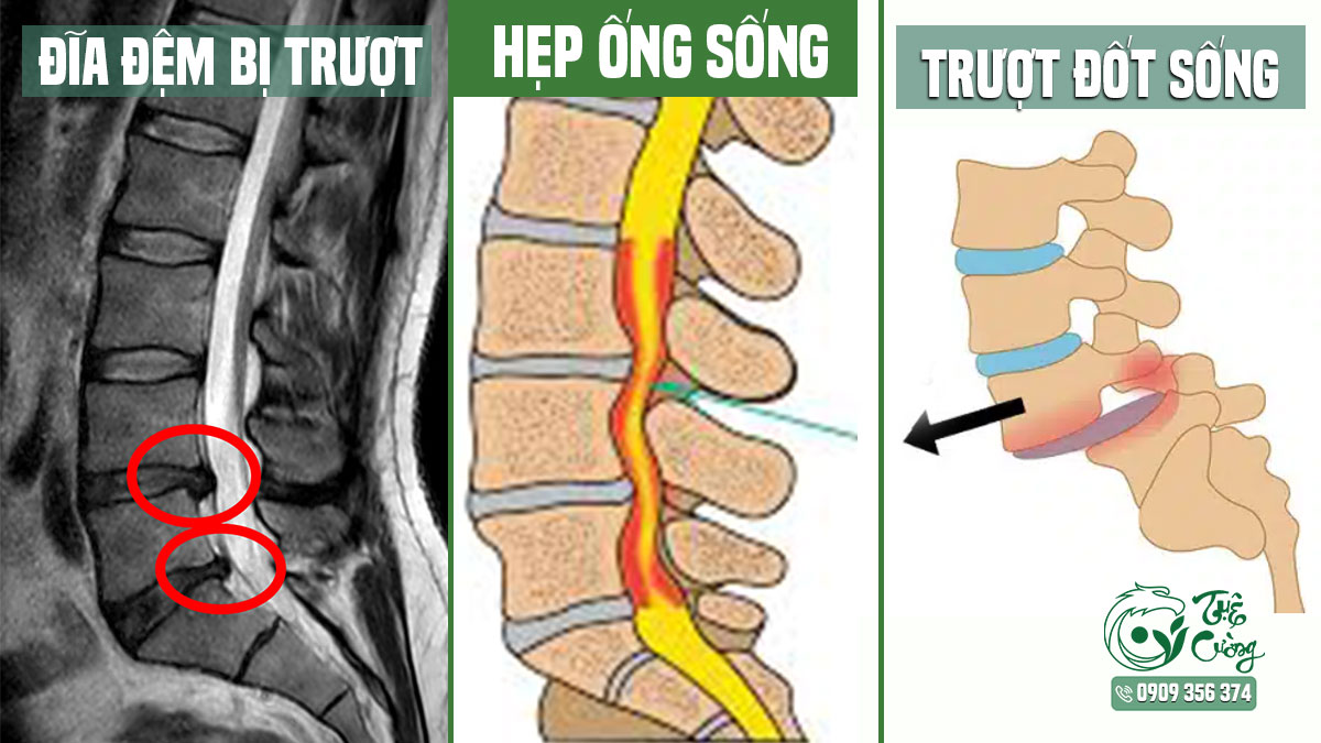 - Trượt đốt sống: Sự trượt đốt sống là tình trạng một trong các xương ở cột sống của bạn- được gọi là đốt sống- trượt về phía trước. Nó phổ biến nhất ở lưng dưới và có thể gây đau. Nó rất có thể xảy ra khi bạn già đi, vì xương ở cột sống của bạn có xu hướng yếu đi theo tuổi tác. Ngoài ra, tư thế sinh hoạt (ngồi, nằm, vận động) và tư thế lao động chưa đúng diễn ra trong thời gian dài cũng dẫn đến trình trạng trượt đốt sống khi khung xương sống không vào đúng chuẩn.